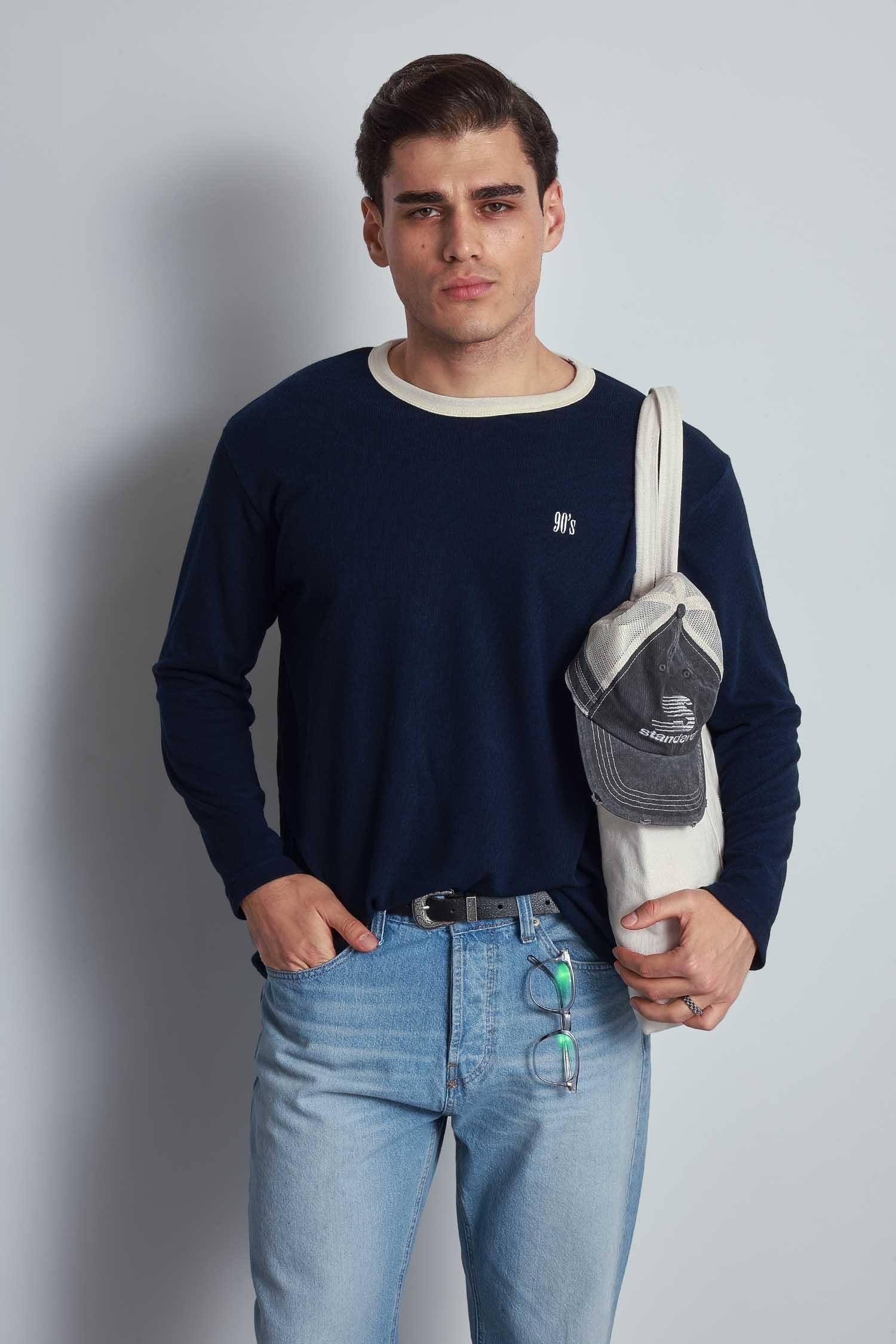 Erkek Kontrast Detaylı Oversize Basic Sweatshirt Lacivert (SWT.0106)