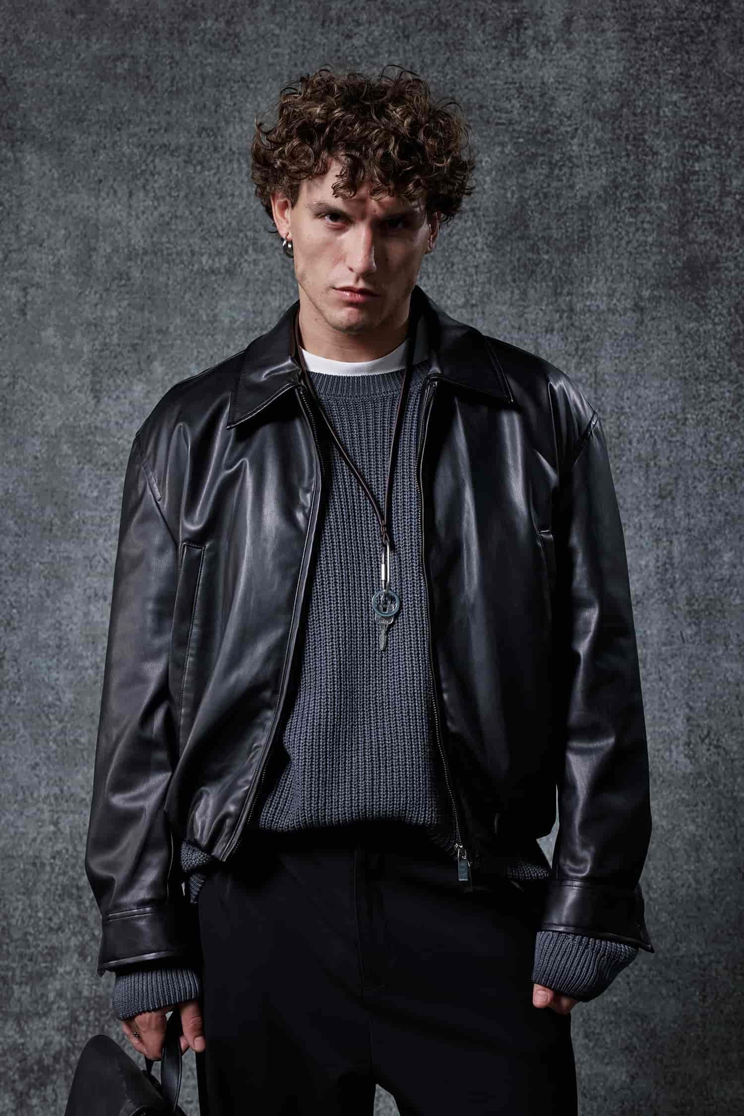 Erkek Oversize Fermuarlı Basic Deri Ceket Siyah