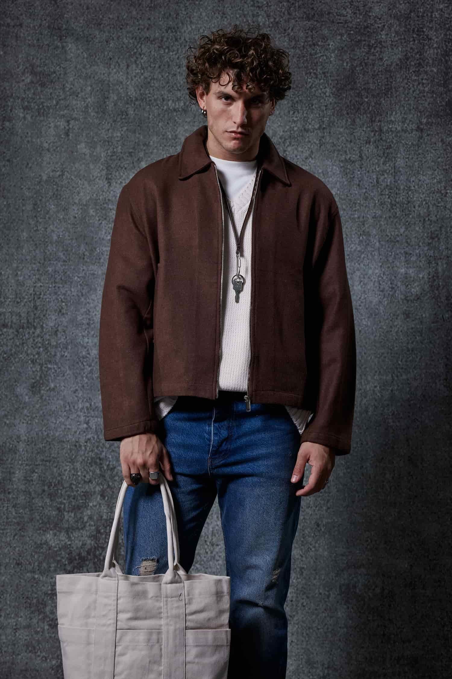 Erkek Oversize İnce Fermuarlı Ceket Kahverengi (CKT.0085)