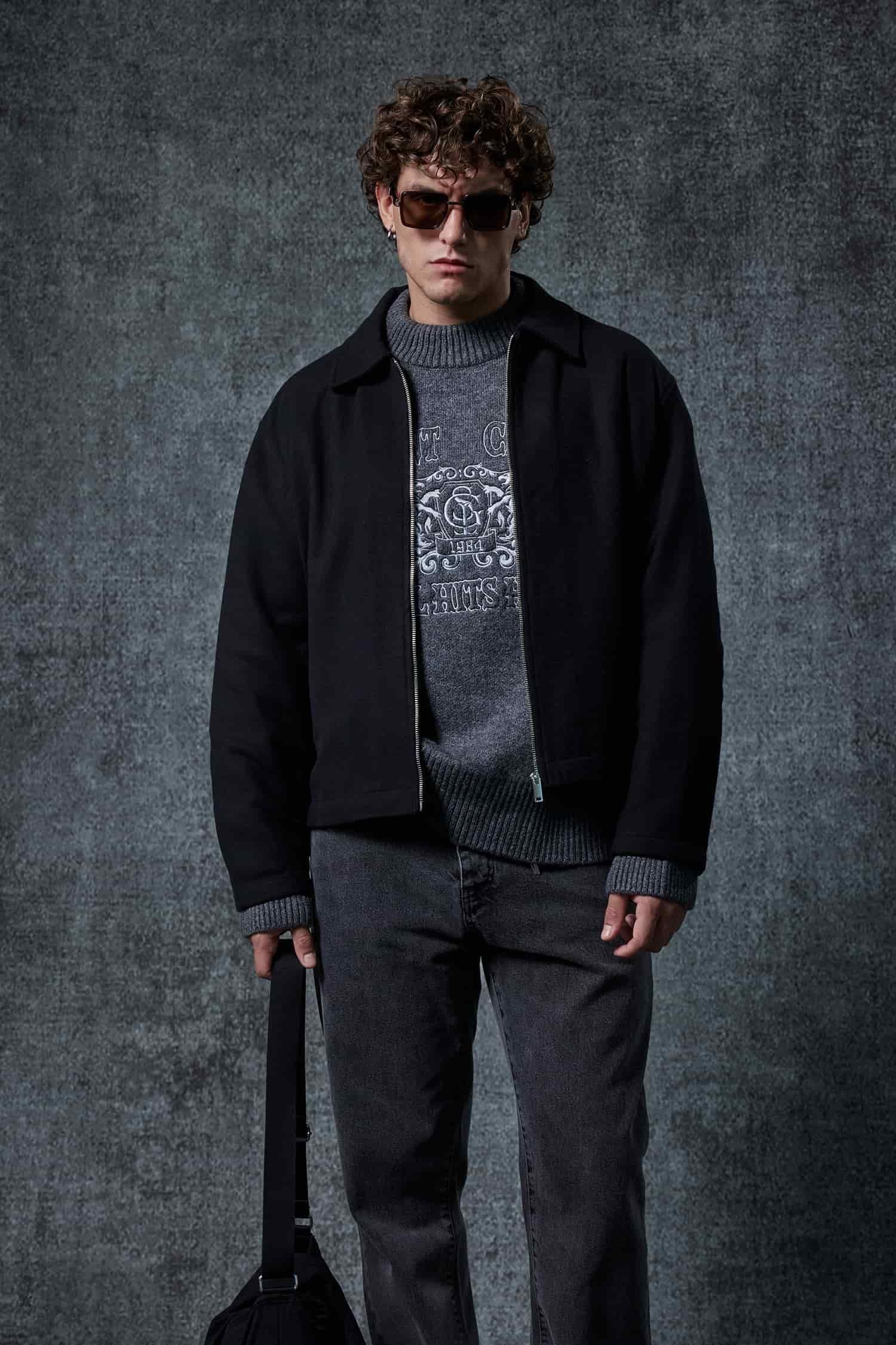 Erkek Oversize İnce Fermuarlı Ceket Siyah