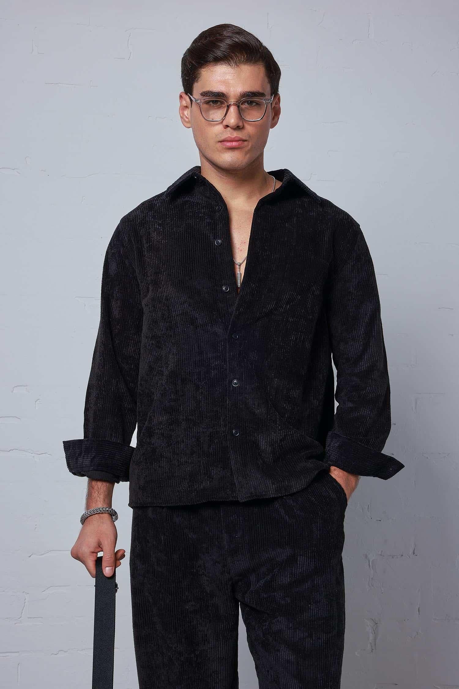 Erkek Oversize Kadife Dokulu Uzun Kollu Gömlek Siyah (GML.0176)