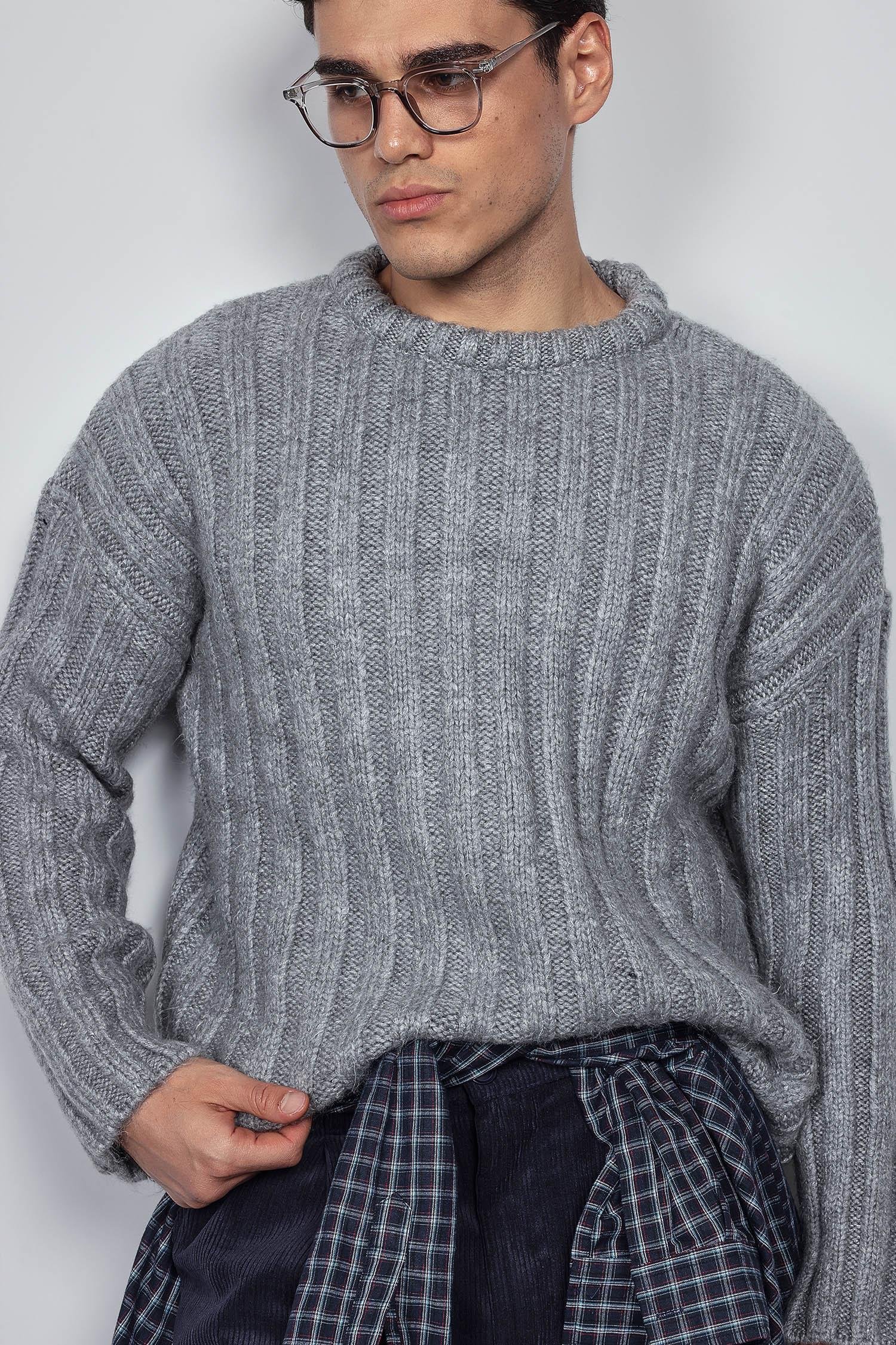 Erkek Oversize Kalın Fitilli Triko Kazak Gri (KZK.0088)