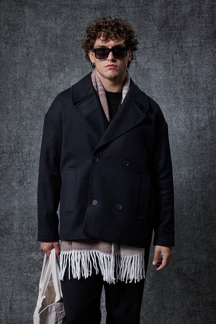 Erkek Oversize Kruvaze Kaban Siyah (KBN.0008)