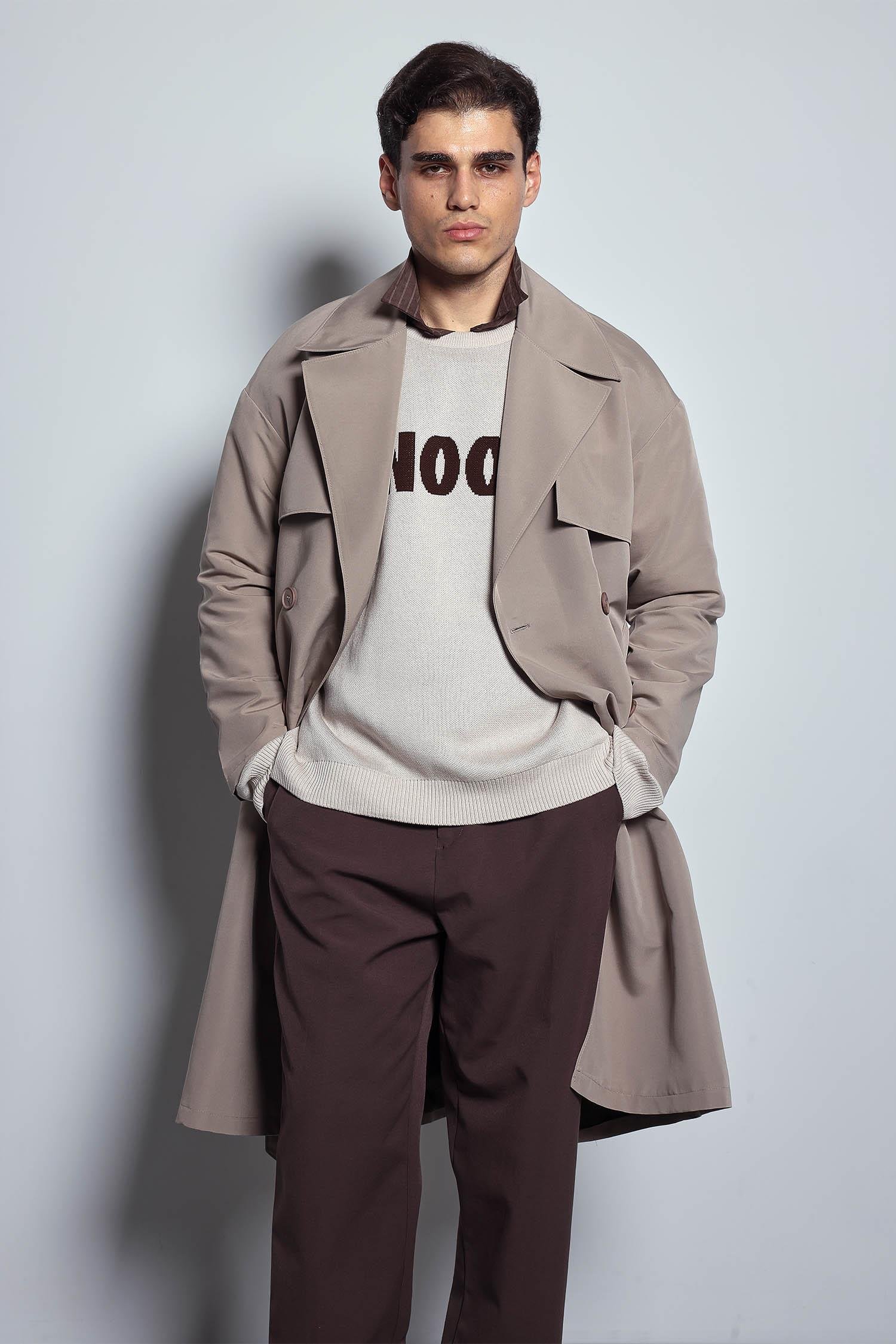 Erkek Oversize Kruvaze Kuşaklı Trençkot Bej (TRC.0003)