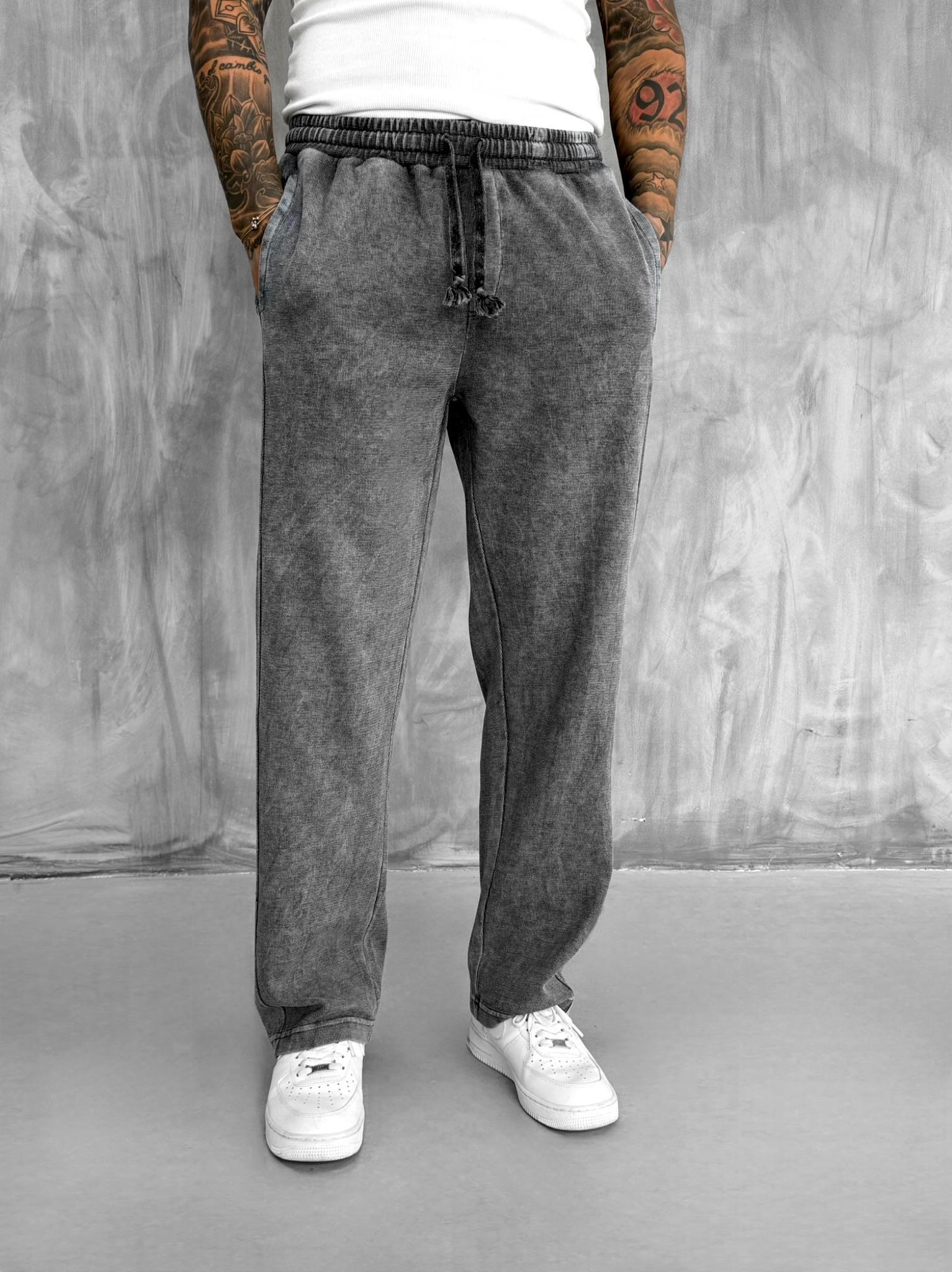 Erkek Yıkamalı Beli Lastikli Regular Fit Eşofman Koyu Gri | Abluka Sokak Tarzı