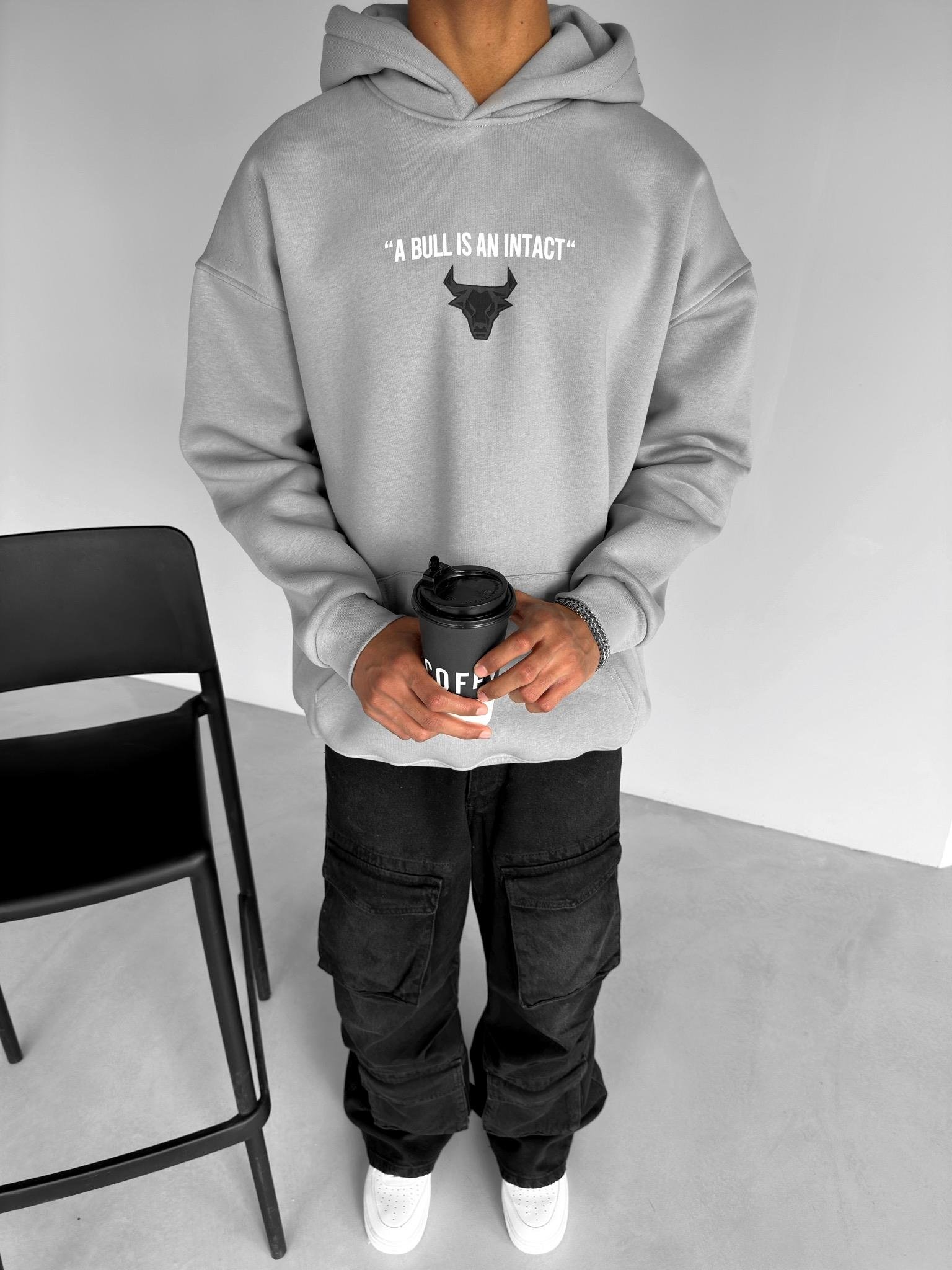 Erkek Bull Baskılı Oversize Hoodie Gri – Sokak Modasının İddialı Parçası