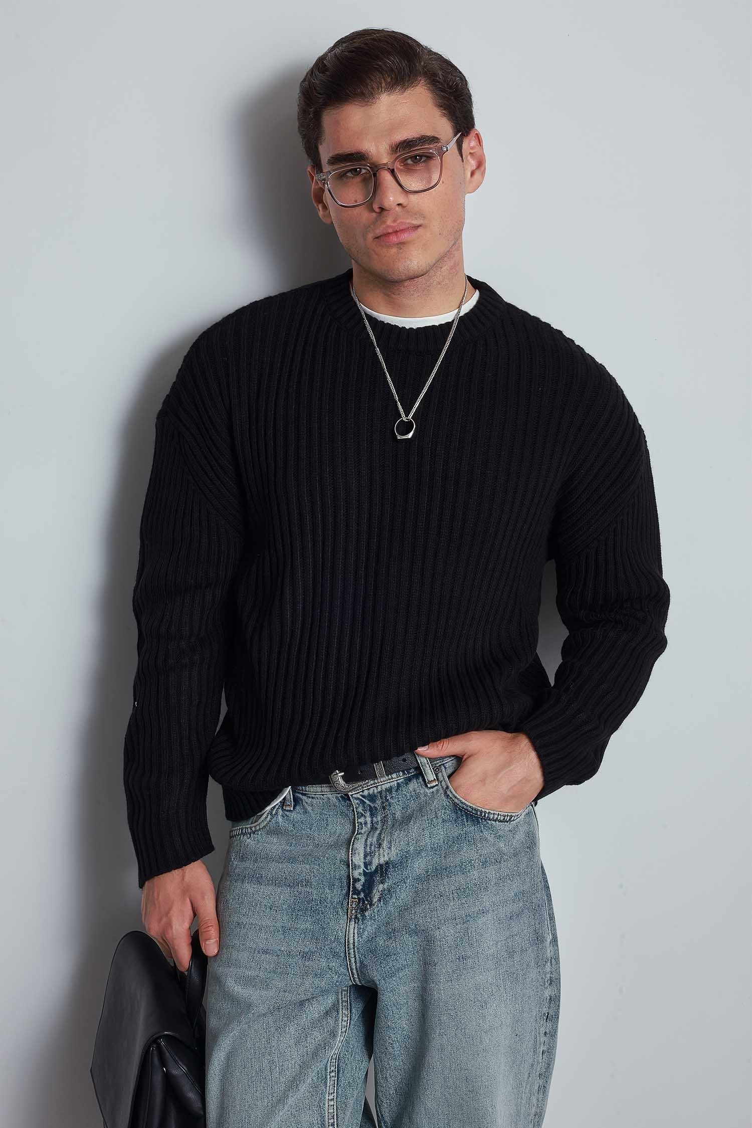 Erkek Oversize Fitilli Örme Kazak Siyah: Şıklık, Konfor ve Tarzın Mükemmel Bileşimi
